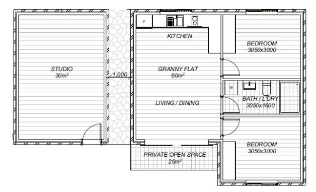 • The Brick Veneer Granny Flat 60m2 is available at $115,000 along with site conditions and GST. However, the Cladded Granny Flat 60m2 is available at $105,000 with specific site conditions and GST.
